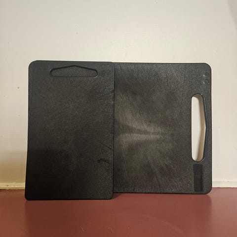 Pent brukt kniv med håndtak i plast. Stor og god til kjøtt og grønnsaker