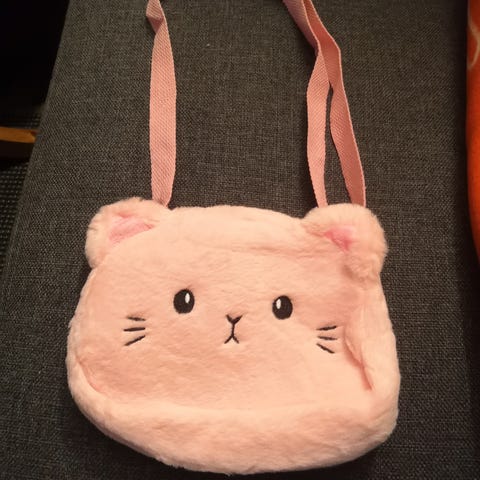 Helt ny barneveske med skulder reim og rom med glidlås.Vesken er ca 30 cm lang og 24 brei.Passer til barn 2-6 år.