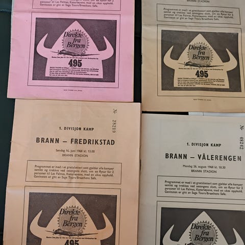 Poster av Brann fotballag Trykt program med lagfoto av Brann-spillerne i røde drakter på stadion. Inneholder oversikt over spillere, lagoppstillinger og kampinformasjon. Egner seg som samlerobjekt for fotball- og Brann-interesserte.