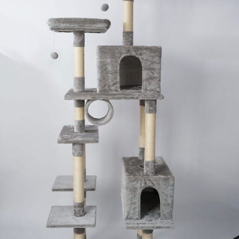 Gjør katten din lykkelig med Merlin, vårt ekstra høye og luksuriøse klorestativ – designet for å tilby både komfort, moro og trygghet i ett. Dette er ikke bare et møbel, men et helt kattetårn med alt katten din trenger: lekeplass, hvilested og utkikksposter.