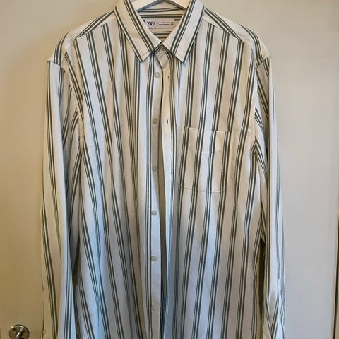 Cotton on garment flanellskjorte for herre i størrelse XL. Skjorten er grønn og laget i myk flanell. Modellen har krage, knappelukking foran og lange ermer. Egner seg godt som en lett ytter- eller overskjorte, eller som vanlig skjorte over T-skjorte eller genser.