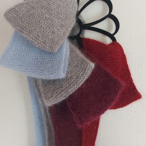 Skjerf strikket I herlig mykt og deilig garn . Se under bilde står det hva dem er strikket i og pris.