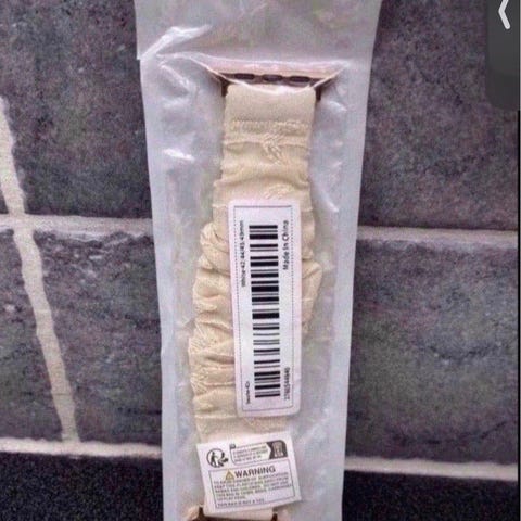 Apple reim til smartklokke for unisex. Settet består av to reimer i tekstil, én i lys rosa og én i lys beige. Reimene har feste som passer til Apple Watch-urhus og justerbar lengde med borrelås. Egnet som erstatningsreim eller ekstra reim til daglig bruk.