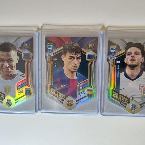 Selger diverse nummererte fotballkort blant annet Salah, Diogo Jota, Ruben Dias, Cody Gakpo osv
