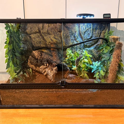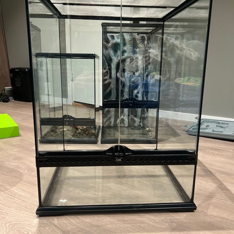 Akvarie/terrarie med varme lampe, uv lampe, varmekabler under sanden. Masse tilbehør. Alt kjøpt på dyrebutikk for mange tusen kroner.