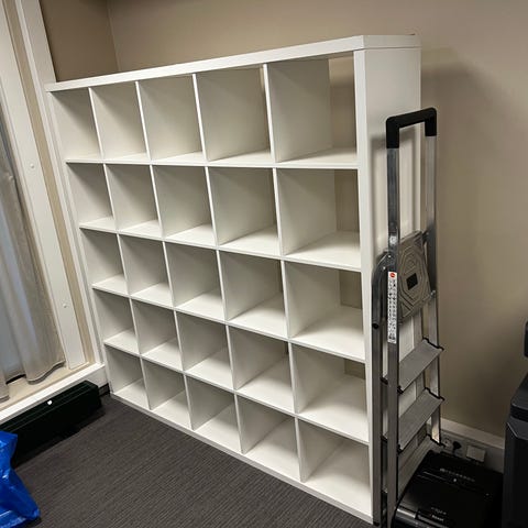 Kallax hylle, 185 høy, 44 cm bred, 39 cm dybde. Se på bilde 3-5. Noen bruksmerker.