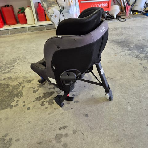 Axkid minikid barnesete i størrelse 9-25. Setet er bakovervendt og har integrert internsele og støtteben mot gulvet for ekstra stabilitet. Fargen er svart/mørk, og trekket dekker både sete, rygg og hodestøtte. Barnesetet festes med bilens belte og støtteben, og har justerbare seler og polstret hodestøtte for bedre tilpasning til barnet. Egnet for bruk i bil for barn innenfor vekt- og høydeområdet som tilsvarer størrelse 25, i henhold til produsentens anbefalinger.