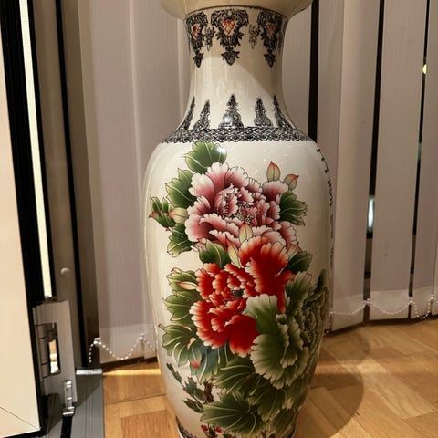 Nydelig cloisonne vase. 21 cm høy, ca 10 cm diameter.
