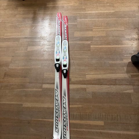 Sense langrennski i rød farge. Klassiske ski med tradisjonell smøresone. Passer til bruk i preparerte løyper. Lengde og øvrige spesifikasjoner er ikke oppgitt på skiene utover serienummeret som vises på bildet.