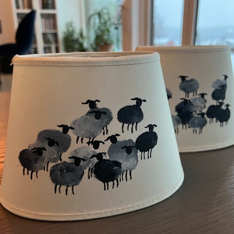 Lampeskjerm håndmalt av Gunilla Annwall selges.