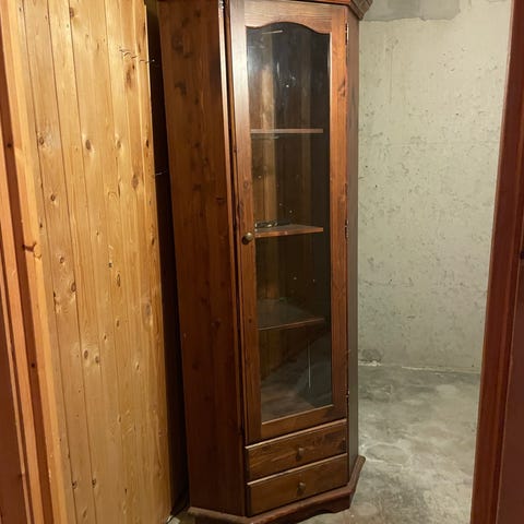Hvit vitrineskap gis bort mot henting i Trondheim.