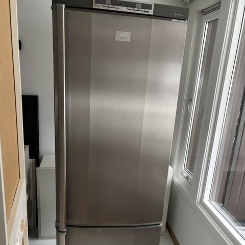 Kombiskapet har kjøledel øverst og frysedel nederst. Front i rustfritt stål eller stålfinish som passer inn på de fleste kjøkken. Skapet er frittstående og plasseres direkte på gulv.