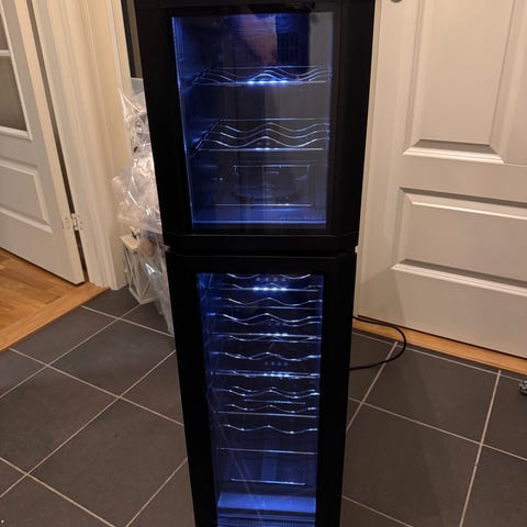 AEG vinkjøler med nettokapasitet på 138 liter og bruttokapasitet på 145 liter. Skapet har flere uttrekkbare trehyller til lagring av vinflasker. Front i glass med metallhåndtak og svart kabinett. Egnet for innbygging eller frittstående plassering der det er behov for temperert lagring av vin og andre drikker.