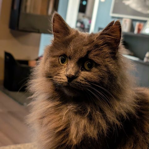 Hun er snild og kosen og katte er sterilisert følger med klorestativ nytt og katte do hun er ute katt men liker best og være inne på vinteren kattebur følger også med tlf 48058522