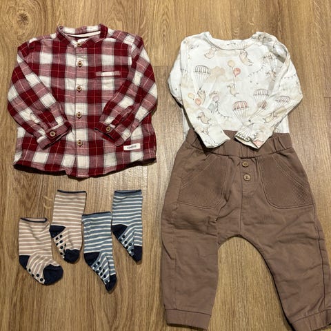 Meste pent brukt og noe nytt, endeste anmerking er at den ene glidelåsen i pysjen som tar imot på en liten hump når man lukker den. Ellers ingen anmerkninger.
