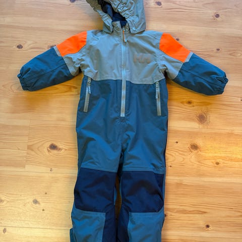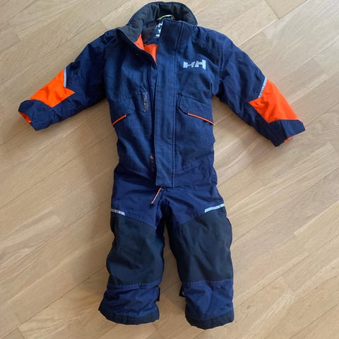 Kjøpt ny 31.01.26 - kun brukt 2 ganger. Kvittering og lapp som hang på plagget medfølger. Full pris: 1999 kr. Helly Hansen kjeledress/vinterdress for barn i størrelse 92. Dressen er i blå polyester og er egnet for utendørs bruk på kalde vinterdager. Den har hette, lange ermer og ben, samt glidelås foran. Materialet er syntetisk (polyester), som tørker raskt og er lett å vedlikeholde. Passer som yttertøy til lek og aktivitet utendørs.