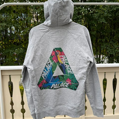 Selger en fin hettegenser fra engelske skatemerket Palace.