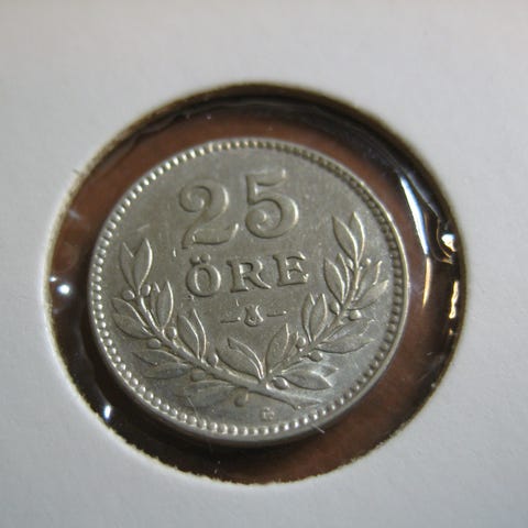 25 øre sverige 1917 sølv kv 0 selges kr 450.-+porto