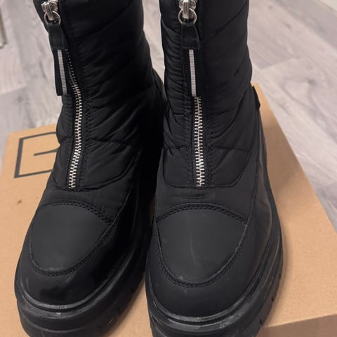 Kari Traa vinterstøvler i størrelse 41. Støvlene er brune med lys, myk innvendig fôring som gir ekstra varme. Kraftig yttersåle med grovt mønster gir godt feste på glatte underlag. Overdelen er i et slitesterkt materiale med snøring foran og forsterket hælparti. Egner seg til bruk på kalde dager og til hverdagsbruk i vinterhalvåret.