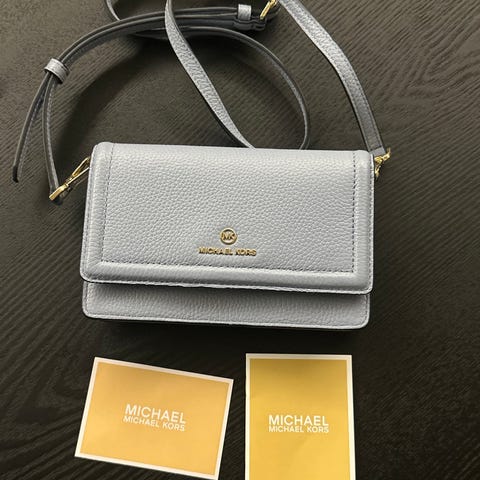 Michael Kors skulderveske i skinn for dame. Vesken er i svart med gullfarget metallkjede og lås. Den bæres over skulderen med kjedestropp som også har skinnparti øverst for mer komfort. . Egnet til hverdagsbruk og til enklere penere anledninger der man trenger plass til nødvendigheter som mobil, nøkler og lommebok. Så er veldig all in one veske. Fått mye glede av den og har eid den i ca 3 år.