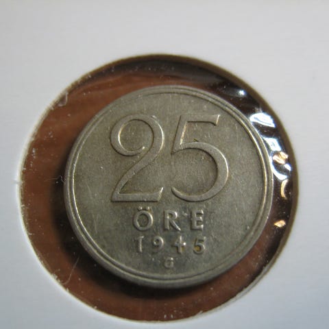 25 øre sverige 1940 sølv selges kr 125.-+porto
