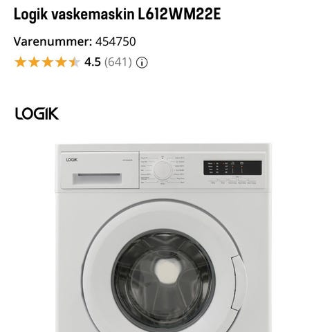 Logik frontmatet vaskemaskin i hvit utførelse. Vaskemaskinen har frontluke for inn- og utlasting av tøy og et oversiktlig betjeningspanel med programvelger og digitalt display. Egner seg for vanlig klesvask i husholdning, inkludert bomull, syntetiske materialer og blandingstekstiler. Passer til plassering i vaskerom, bad eller kjøkken der det er opplegg for vann og avløp.