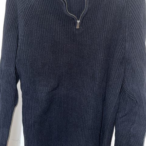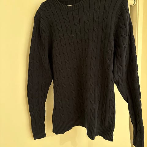 Dressmann genser for herre i størrelse M. Genseren er svart og laget i bomull. Den har rund hals og strukturstrikket mønster. Passer til hverdagsbruk og kan kombineres med både jeans og chinos.