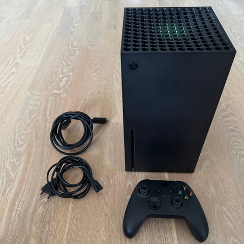 Microsoft Xbox Series X spillkonsoll selges med to kontrollere.