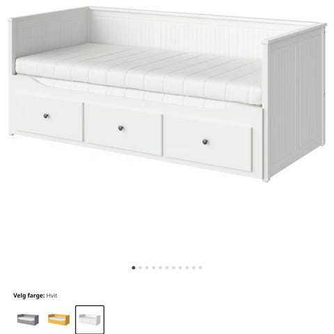 Pent brukt Hemnes dagseng med 3 skuffer for oppbevaring. Kan benyttes som enkel eller dobbel seng. Madrasser følger med, har blitt benyttet beskyttelsestrekk på madrasser.