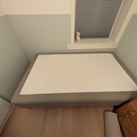 Skårer rammemadrass, har noen flekker, som sikker kan vaskes bort, ellers i god stand. Har blitt brukt med overmadrass oppå.