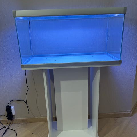 Akvariet er kjøpt i 2019 og ble brukt i 2-3 år. Selges da jeg har oppgradert i størrelse.