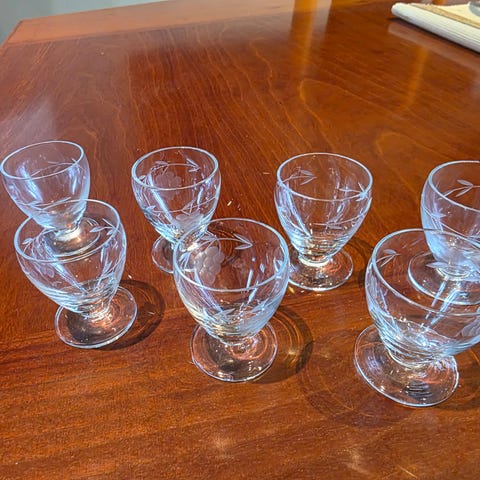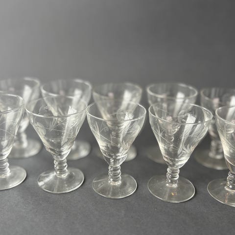11 stk Hadeland små likør-/drammeglass med dekor.