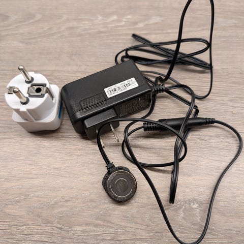 Dette følger med: Støvsuger, ladestasjon og strømadapter (som vist på bildet).