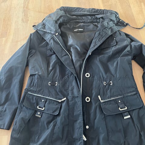 Gerry Weber jakke for dame i blå polyester, one size. Jakken har rund hals, knappelukking foran og lange ermer. Glansfull overflate med diskrete vertikale striper i stoffet. Passer som lett jakke eller som pen overdel over topp eller kjole. Materiale: polyester. Farge: blå. Størrelse: one size (dame).