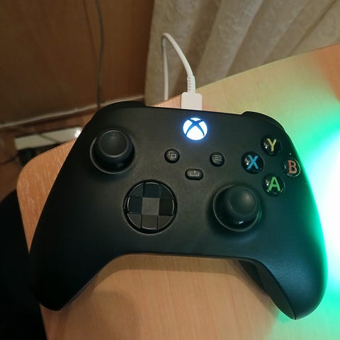 Xbox Series trådløs kontroller i svart farge. Standard Xbox-layout med to analoge styrespaker, retningsknapper, ABXY-knapper og skulderknapper/trigger-knapper. Kontrolleren har strukturert grep på baksiden for bedre håndtering og en sentral Xbox-knapp for navigasjon. Egnet for bruk med Xbox Series-konsoller og kompatible enheter som støtter Xbox-kontrollere.