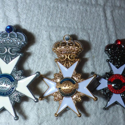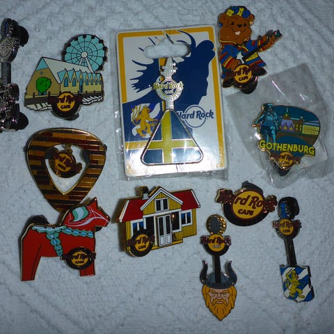 13 pins og en button fra Hard Rock Café i Stockholm selges, samlet