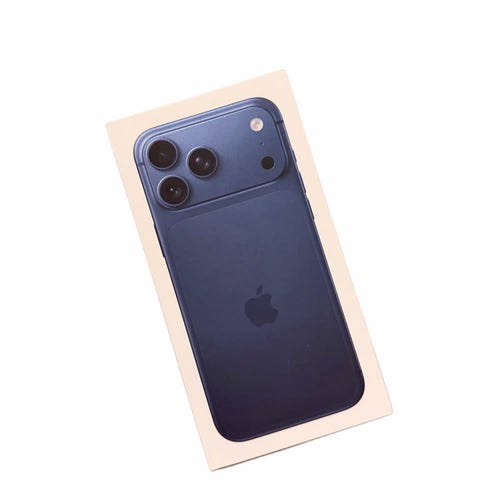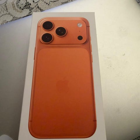 Pakken inneholder iPhone 17 Pro og tilbehør som følger med fra produsenten ved kjøp (se eske for detaljer).