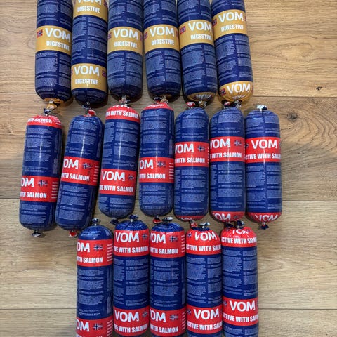 Acana er ca. 6 kg, Royal Canin 3.5 kg.