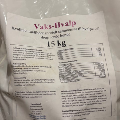 beregnet på hundevalper i vekstfasen.