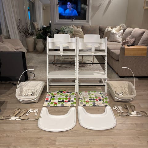 Ny pris på stol er 2649kr, babyset 649, brett 699, tippesikring 99kr, putesett 499kr. Så her får du alt til kun 2600kr