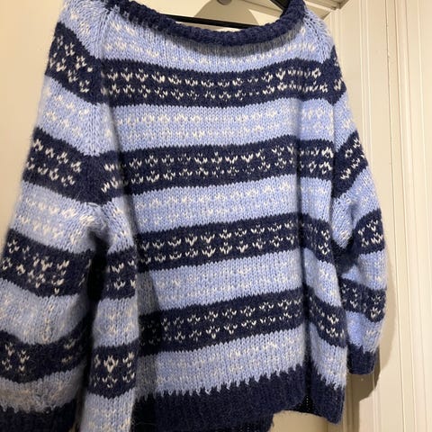 Nystrikket genser; Blomstereng fra Runastrikk selges🌸💖