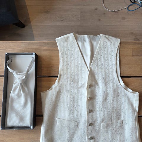 Vest og matchende slips med lommetørkle selges samlet med to sløyfer en til barn og en til voksen.også med lommetørkler.
