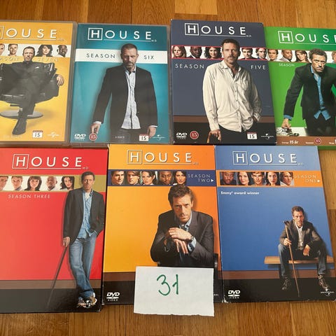 House M.D. sesong 8 DVD. TV-serie i DVD-format med aldersgrense 15 år. Sesongen inneholder flere episoder fordelt på flere plater. Omslaget viser hovedrollefiguren og sentrale biroller fra serien.
