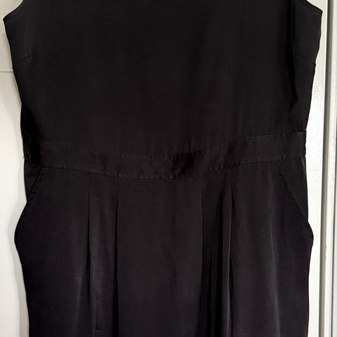 Topp for dame i størrelse XL. Toppen er svart og laget i bomull. Ermeløs modell med rund hals og lett rynkedetalj foran. Enkel pyntekant rundt halsen og elastikk nederst for god passform.