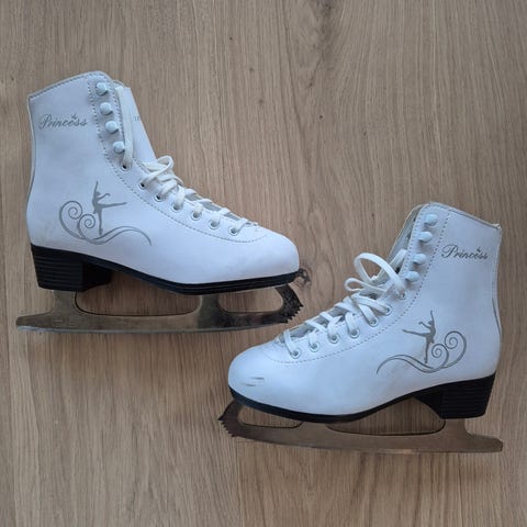 Nancy kunstskøyter i størrelse 36. Klassiske hvite skøyter med snøring og støttende skaft.