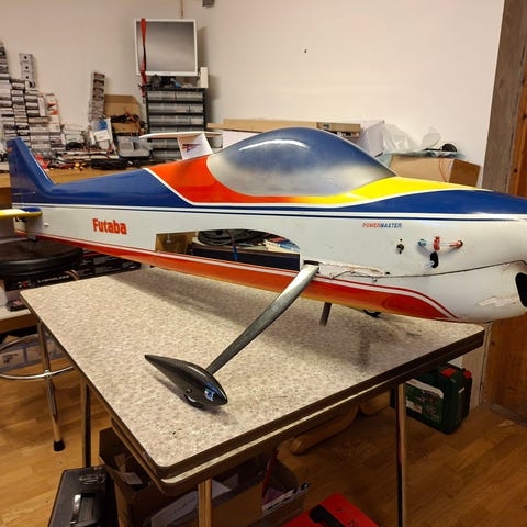 Suprastar 25 selges med tungt hjerte. Men når man bygger 10 modeller i året så må noe ut. Superlett og flyr som en drøm, gode 500 kroners digitale futaba 3150 servoer. Dualsky motor som trekker den vertikalt på 4s. Åpen for bud men ikke no skambud på denne, mest lyst til å beholde den.