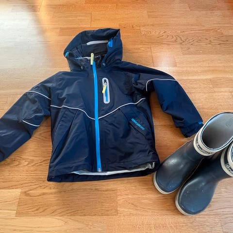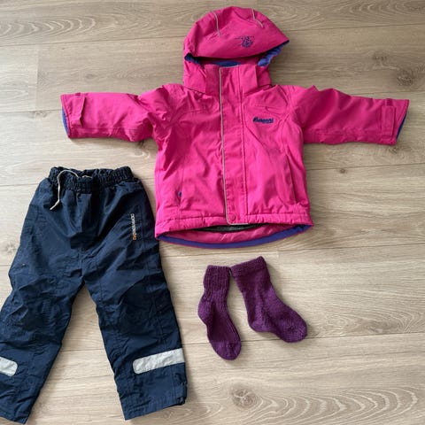 Ytterjakke i str 92 med ett par votter (2 år) og ullhals (onesize)