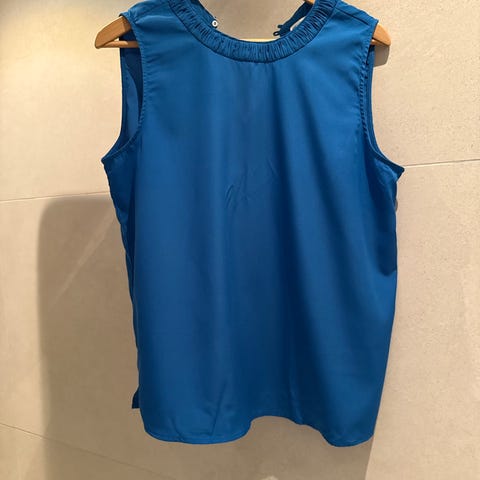 Missoni kjole for dame i størrelse 44 (Italiensk størr, tipper den er en S/36). Kjolen er flerfarget med bølgemønster i hovedsakelige røde, oransje og mørke toner. Den har kort erm og rund hals. Materialet er polyester. Kjolen har en sort underkjole som er fastsydd i skulderstropperne inni kjolen. Passer som hverdags- eller penkjole avhengig av styling.