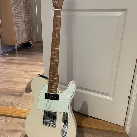 Selger en pent og lite brukt squier telecaster, alt fungerer som det skal og den har kun en liten synlig ripe (se siste bilde). Den har vært nylig stemt og intonert, mulig den må intoneres igjen snart men for nå er den god å spille på.
