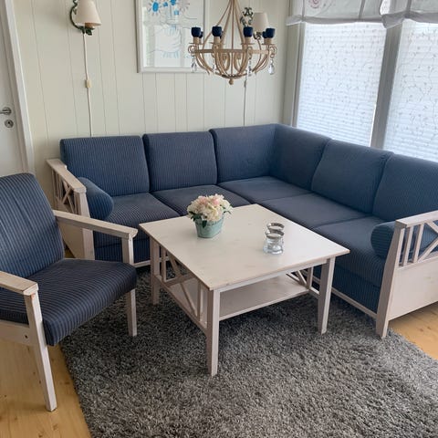 Sofaen er delbar i 3 deler, så enkel å flytte på.